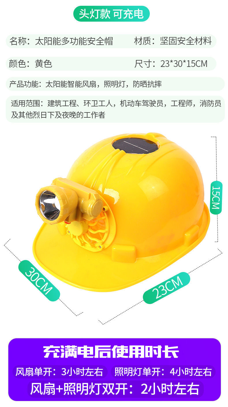 Safety Cap with Fan Charging Solar Construction Site Air Con...