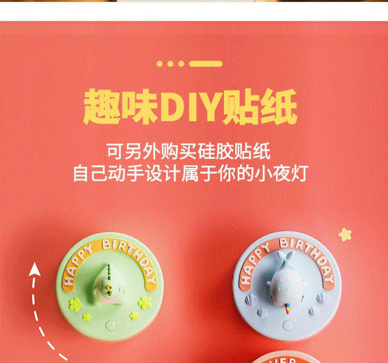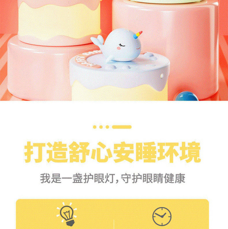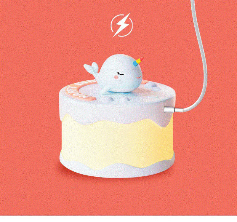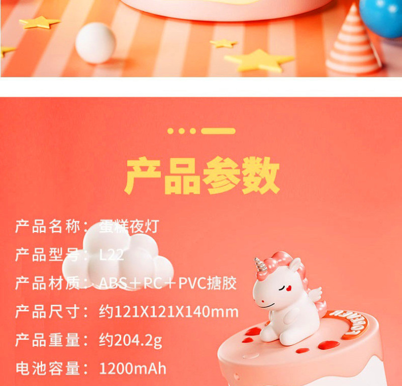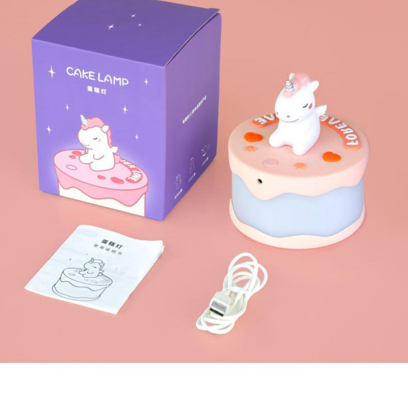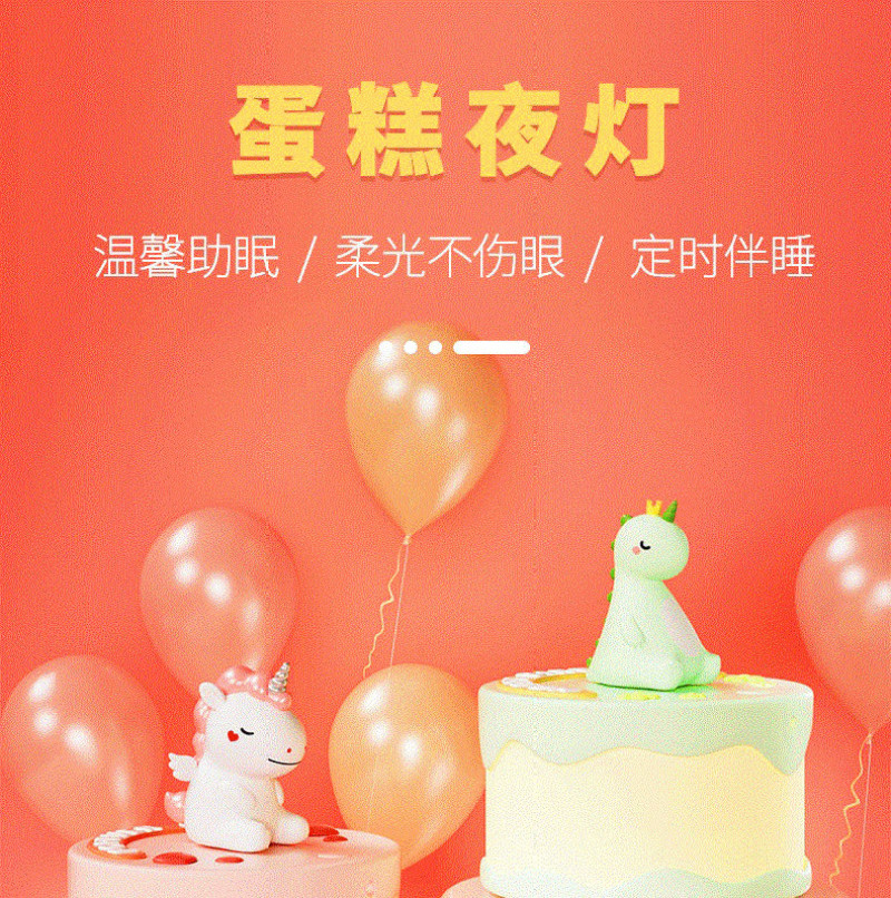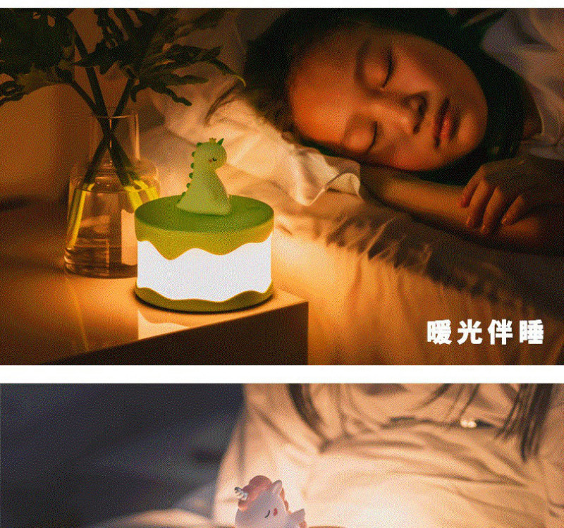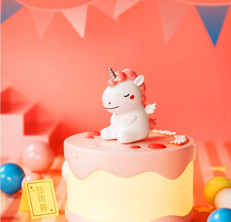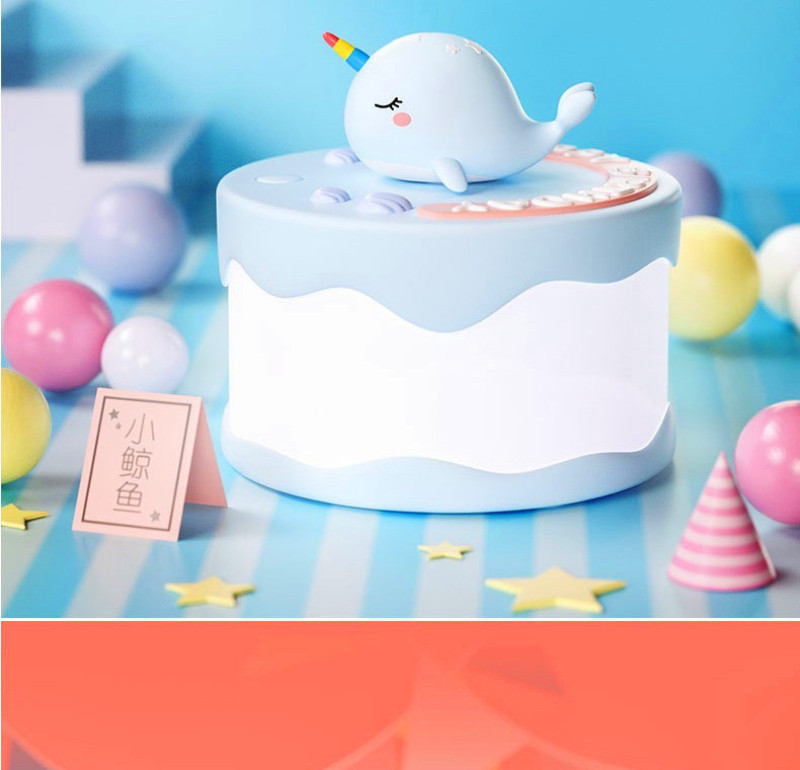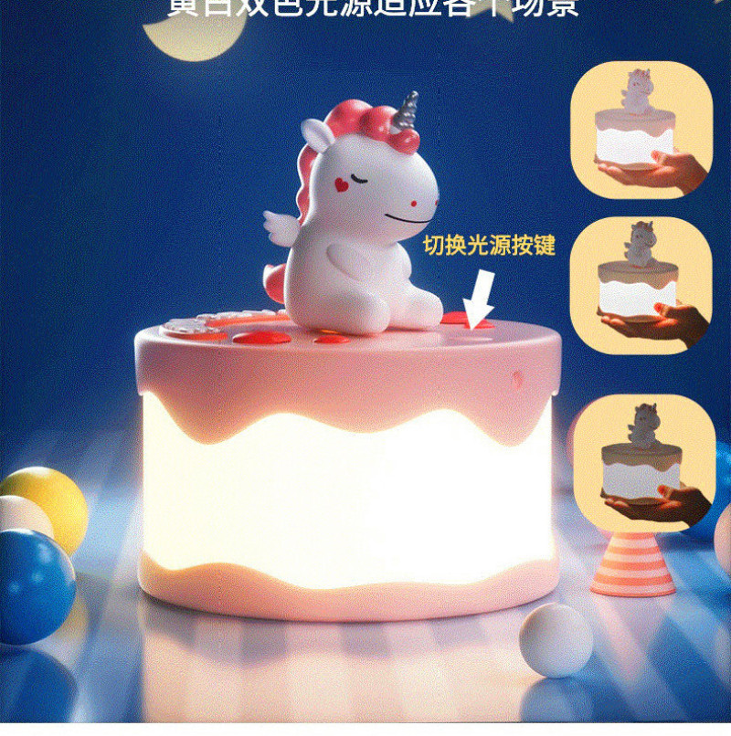 Product name: Cake night light Article No. : 007966 Product size: 12*12*14 Packing size: 12.5*12.5*16.5 Packing quantity: 60PCS Color/Style: Baby dinosaur green/baby blue whale/Unicorn