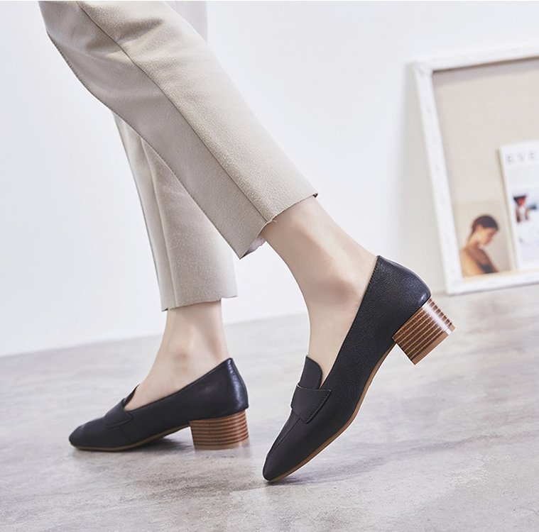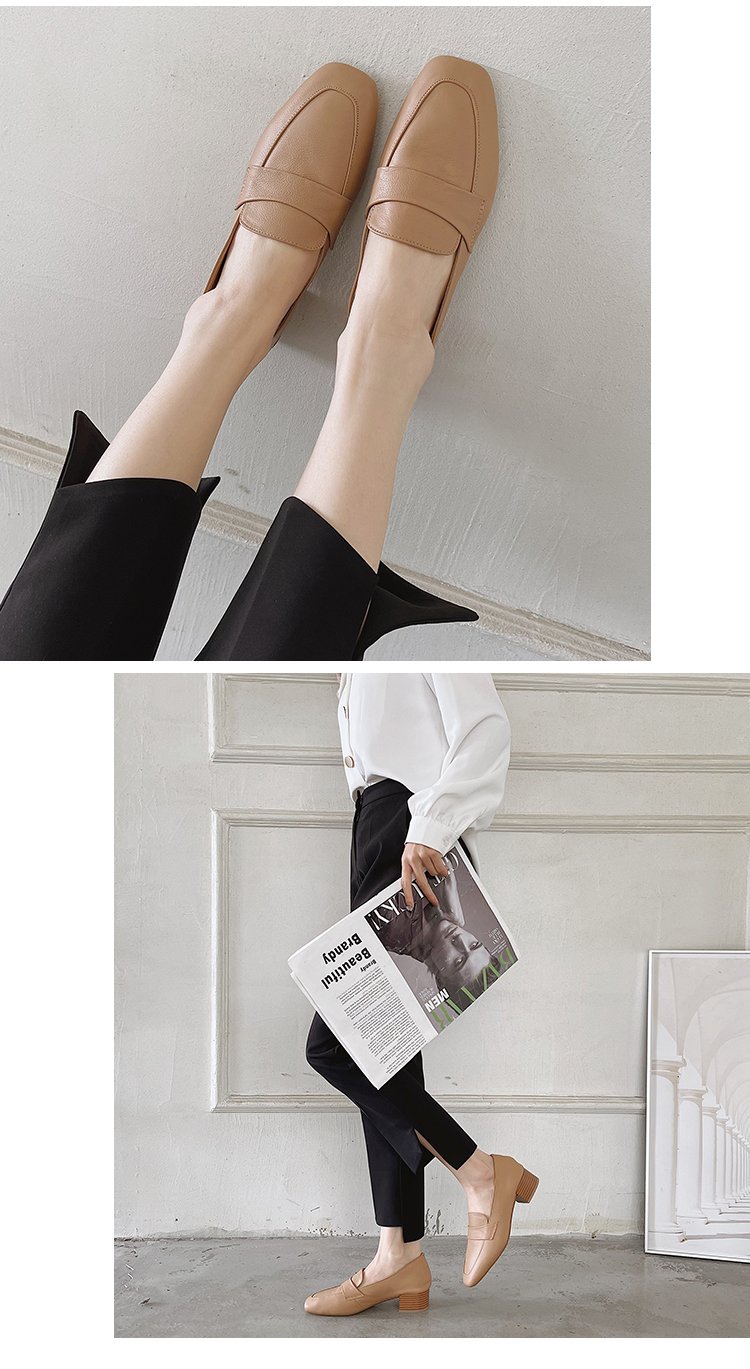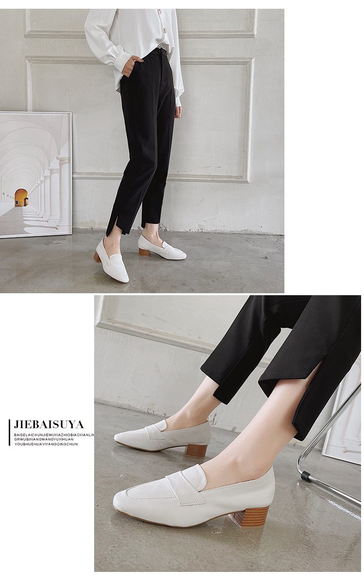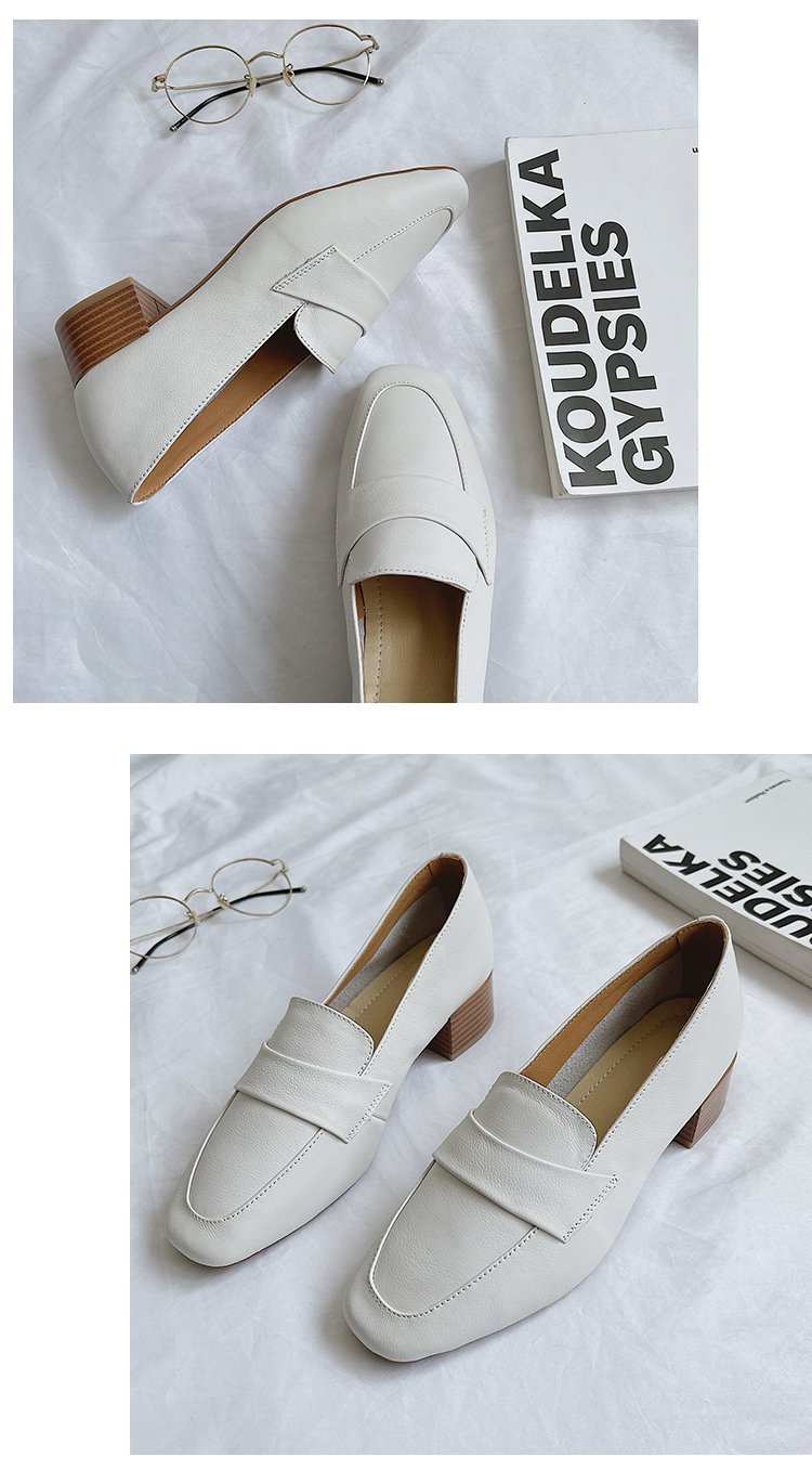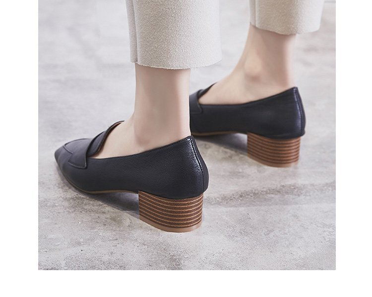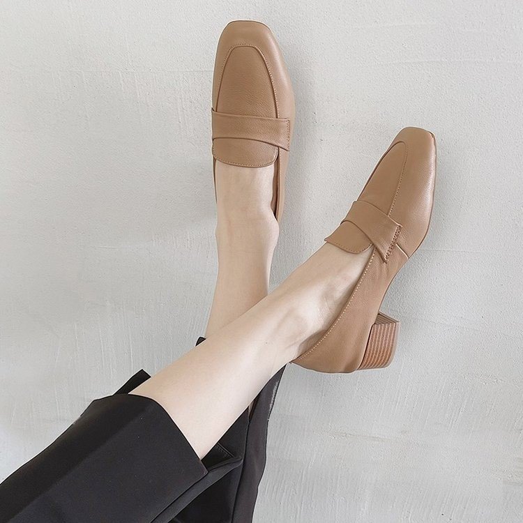 Chunky Heel Pumps Women's 2021 Spring and Autumn New Korean Style Mid Heel Loafers Slip-on Leat