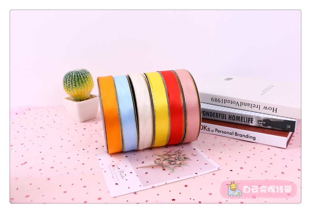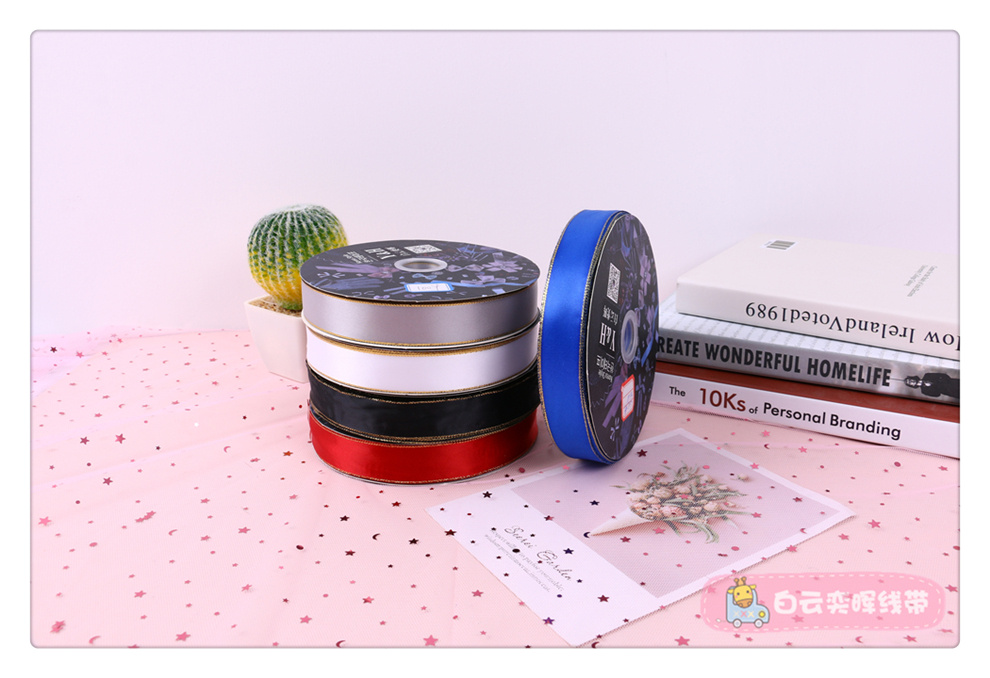 Product Name: Golden Edge 20 four-color glossy clothing accessories ribbon cake baking wedding candies box binding ribbon specifications