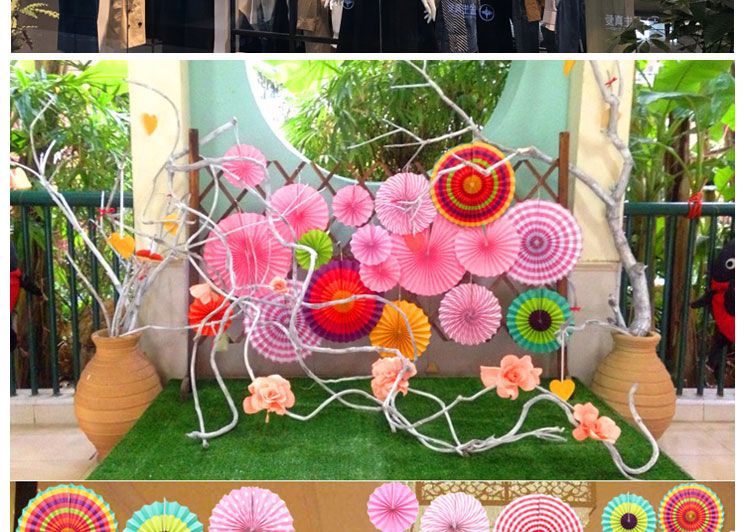 Shop Wall Ceiling Decorative Paper Fan Flower Pendant Shopping Window Supermarket Jewelry Birthday W